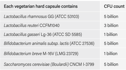 — Helps support beneficial gut flora during antibiotic use in healthy adults and healthy children