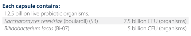 - Ultra Flora SB Dysbiosis contains Bifidobacterium lactis (Bi-07) as bifidobacteria may be decreased in traveller’s diarrhoea.